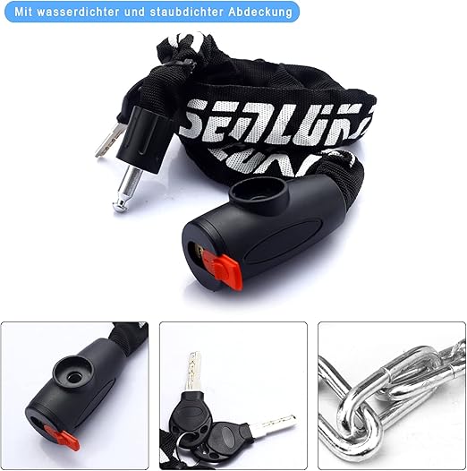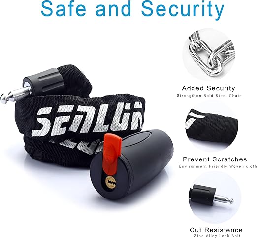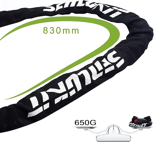 Bisikletinizi bir ağaç, kapı, çit, korkuluk, kalın çubuk ve diğerlerine sabitlemek için yeterince uzun 93 cm. Kilit aynı zamanda motosiklet, scooter, kaykay, ızgara, merdiven, kapı, çim biçme makinesi ve daha birçok başka için de kullanılabilir.