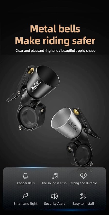 【Yüksek kaliteli malzeme】Yüksek kaliteli bakırdan sağlam ve uzun ömürlü konstrüksiyon. Bisiklet zili, paslanmaz ve yağmurda sürüş sağlayan bakır alaşım, plastik ve paslanmaz çelikten oluşur. PA taban ve kaymaz camlar da uzun ömürlüdür ve gidonda güvenli bir tutuş sağlar.