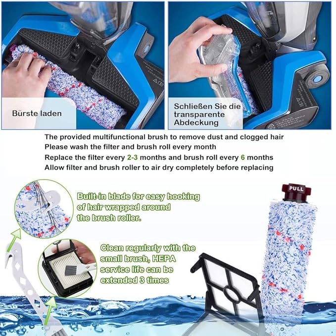 Bissell Crosswave 3’ü 1 arada, 2 adet yedek filtre ve 2 adet çok yüzeyli fırça rulosu, evcil hayvan, Bissell CrossWave 1866 1785 2052 1713 2225N elektrikli süpürge için