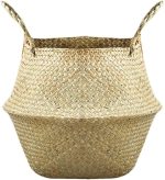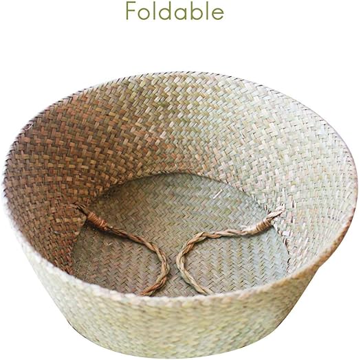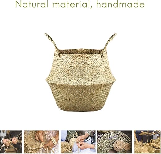 Bitki saksısı, çamaşır sepeti, katlanabilir deniz otu çiçek sepeti, el dokuması çiçekler, saman sepet, bitki saksısı için, kulplu (L)