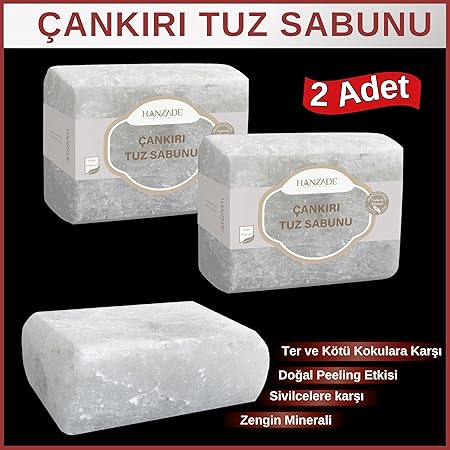 Türkiye’nin eşsiz Çankırı kaya tuzundan üretilen bu doğal sabun, cildinize derinlemesine temizlik ve bakım sunar. Çankırı kaya tuzunun mineral zenginliği ile formüle edilen Hanzade Bitkisel Kaya Tuz Sabunu, cilt sorunlarına karşı destek olurken doğal bir arınma sağlar.