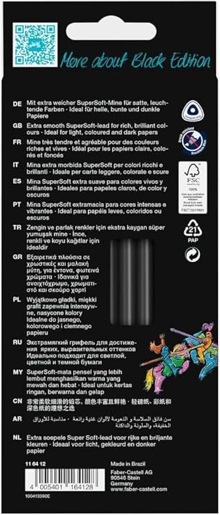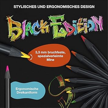 Black Edition Renkli Kalemler – 12 Sayı, Siyah Ahşap ve Süper Yumuşak Çekirdek Kurşun, Yetişkin Boyama, Sanatçılar ve Yeni Başlayanlar için Profesyonel Kalite Renkli Kalemler