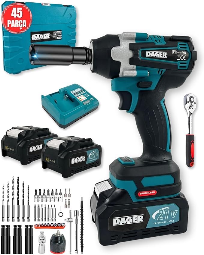 ✅ Çift 3.0Ah Akü ile Kesintisiz Güç Sete dahil 2 adet yüksek kapasiteli 3.0Ah Li-ion akü sayesinde uzun süreli, kablosuz çalışma imkânı sunar. Şarjı bitmeden işlerinizi yarım bırakmazsınız.
