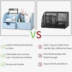 (Blue) – 7 Storage Compartments Multifunctional PU Leather Office Desk Organiser,Desktop Stationery Storage Box Collection, Business Card/Pen/Pencil/Mobile Phone /Remote Control Holder Desk Supplies Organiser (Blue)