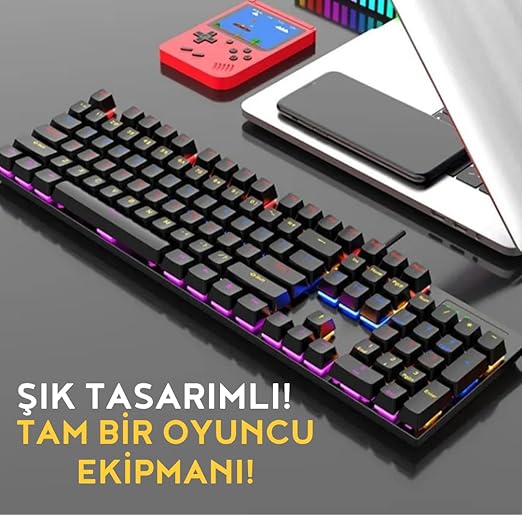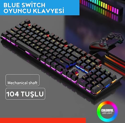 Blue Switch Mekanik Gaming Oyuncu Klavyesi 11 Animasyonlu Rainbow Led Işıklı