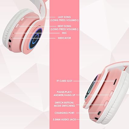 【Entegre TF kart yuvası ve sağlam uyumluluk】Bu kız çocuğu bluetooth kulaklığı, 32G içinde TF kartlarını destekleyen bir TF kart yuvasına entegre edilmiştir. MP3 çalar olarak kullanabilir ve yüklü müziğin keyfini doğrudan çıkarabilirsiniz.