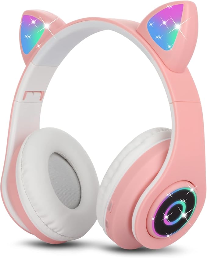Bluetooth Kulaklık Kız Çocuk Kulak Üstü Kedi Kulaklığı RGB LED Işık Katlanabilir Stereo Kablosuz Kulaklık Çocuklar ve Yetişkinler için Mikrofonlu Dizüstü Bilgisayar / PC / TV (Pembe)