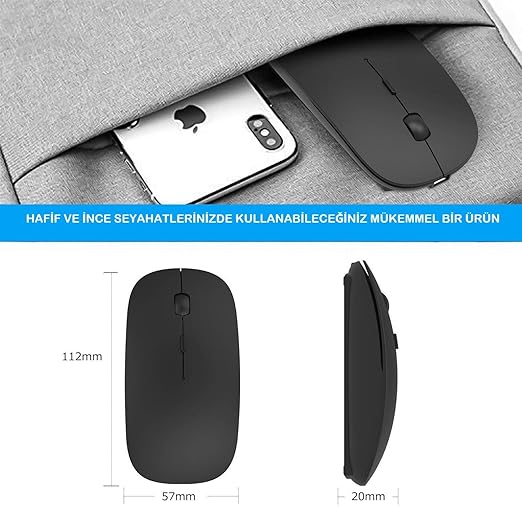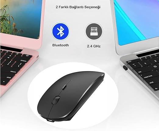 Bluetooth Şarjlı 2.4GHz Kablosuz Mouse | Sessiz Tıklama | Ergonomik Tasarım | Telefon,Tablet, PC, Mac, Laptop Uyumlu