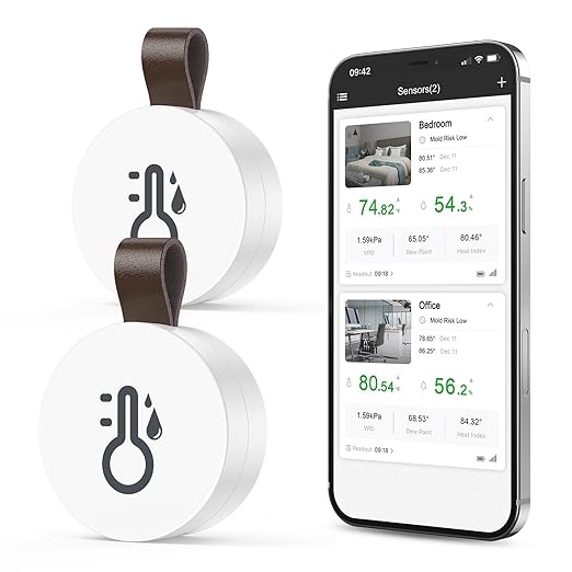 Bluetooth termometre, higrometre, sıcaklık ve nem ölçer, uygulama ve veri depolama, dijital sıcaklık nem sensörü, ofis, sera, şarap mahzeni için, 2 adet