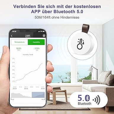 【Sağlam ve verimli bağlantı】: Sıcaklık ve nem sensörümüz 50 metreye kadar hızlı ve sağlam bir bağlantı sağlayan yüksek kaliteli bir Bluetooth 5.0 çipine sahiptir, aynı anda birden fazla sensörün bağlantısını destekler ve veri aktarımı sırasında son derece düşük gecikme süresi sağlar.