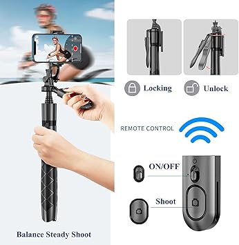 Bluetooth Uzaktan Kumandalı Selfie Çubuğu Tripod – 360° Döner, 150 Cm Ayarlanabilir, Hafif Taşınabilir, iPhone ve Android Uyumlu, Vlog, Video, Seyahat için
