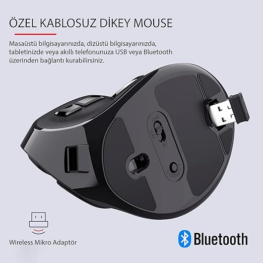 Bluetooth+2.4G Kablosuz Dikey Ergonomik Şarj Edilebilir Sessiz Mouse