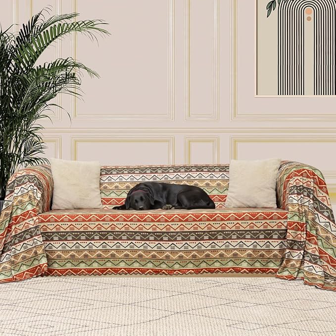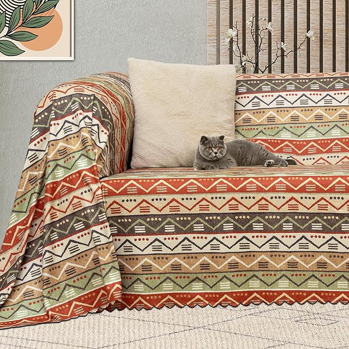 Boho Etnik Desenli Mikrofiber Koltuk Örtüsü ve Şalı, Kaymaz 180×300 cm