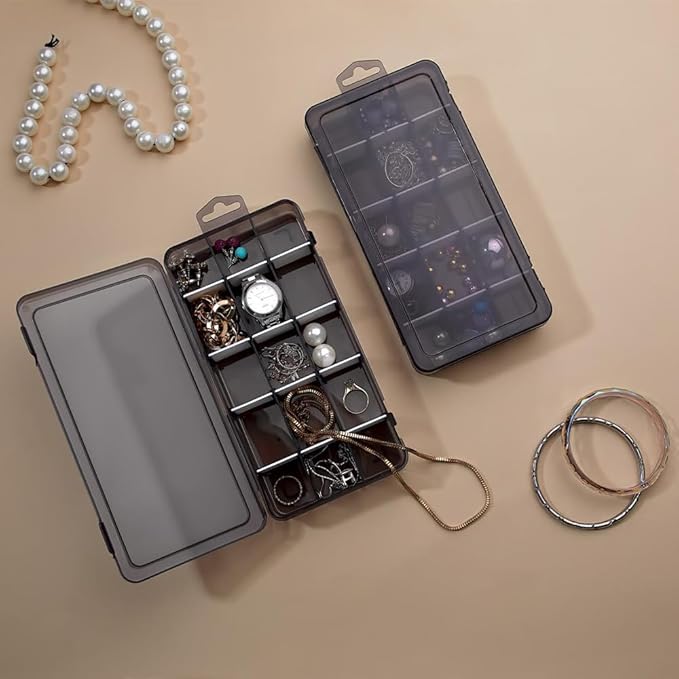 Bölmeli Takı Organizeri, Şeffaf Füme Kapaklı, Yüzük Küpe Kolye Düzenleyici, 20x10x3 cm