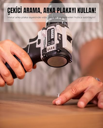Metal Arka Plaka – Mini Çekiç Fonksiyonu Matkabın arkasındaki metal plaka, ufak vida veya çivileri sabitlemek için mini çekiç olarak kullanılabilir; pratik ve yenilikçi bir özellik!