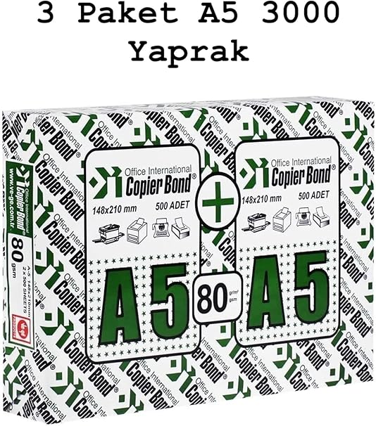 Bond A5 Fotokopi Kağıdı 3 Paket 1000 Yaprak x 3 Toplam 3000 Yaprak