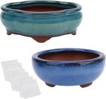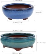Bonsai Saksı 12,4 cm 14,5 cm 2 adet Küçük Etli Sırlı Saksılar + 6 Yumuşak Fileli Drenaj Ekranı