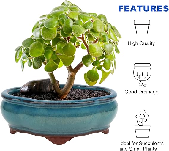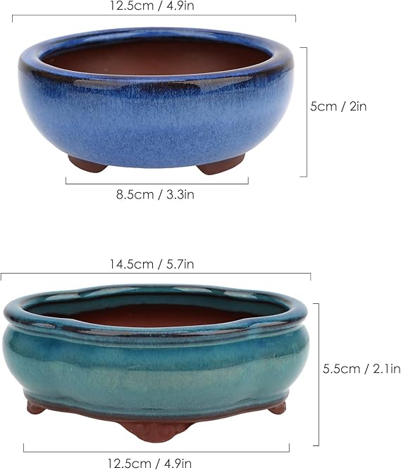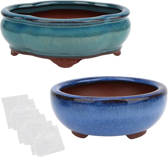 Bonsai Saksı 12,4 cm 14,5 cm 2 adet Küçük Etli Sırlı Saksılar + 6 Yumuşak Fileli Drenaj Ekranı