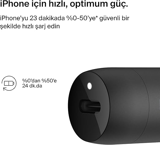 HIZLI ARAÇ İÇİ ŞARJ: 30 W Güç Dağıtımı ile bu araç şarj cihazı, bir iPhone 14 Pro’yu sadece 23 dakikada %0’dan %50’ye, Samsung Galaxy S23 Ultra’yı sadece 24 dakikada %0’dan %50’ye ve diğer uyumlu cihazları optimum hızlarda şarj etmenizi sağlar