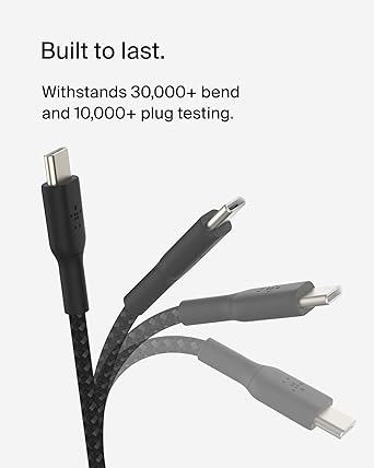 Boost Charge Örgülü USB-C, Hızlı Şarj Cihazı, USB-C Şarj Kablosu, iPhone 16, 15, Samsung Galaxy S24, S23, Pixel, iPad, MacBook, Nintendo ve Daha Fazlası için Hızlı Şarj, 1 Metre, Siyah