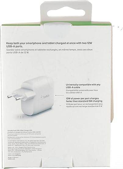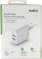 Boost Charge USB-A Şarj Cihazı, İki Bağlantılı, 24 W iPhone 15/15 Plus, 15 Pro, 15 Pro Max ve Eski Modeller, S20, S20 Ultra ve Pixel 4 İçin