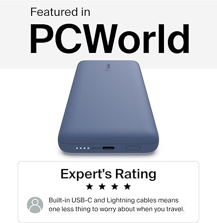 BoostCharge Plus 10000 mAh Kapasiteli Taşınabilir Powerbank, MFI Sertifikalı 2 adet USB-C kablo bağlantı noktası, 23W, Mavi