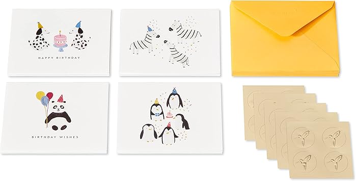 Bu birinci sınıf kırtasiye seti, dalmaçyalılar, zebralar, penguenler ve pandalar gibi sevimli hayvanların yer aldığı doğum günü kartlarını içerir – Çocuk doğum günleri, teşekkür kartları, davetiyeler ve daha fazlası için mükemmel!