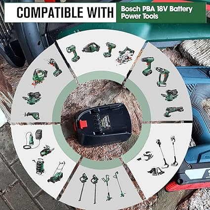 【Bosch PBA 18 V Alliance aletleri için çalışır】Akü adaptörü Bosch PBA/PSB/PSR 18 V Garden serisi tüm cihazlar için birçok yeşil aletle mükemmel uyumludur. Bosch 18 V PBA akülü elektrikli aletlerin yerine geçer.