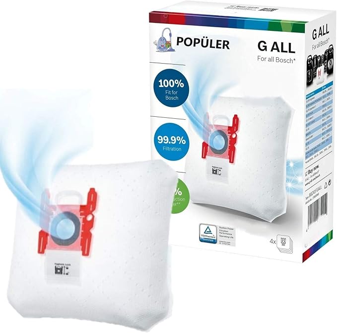 BOSCH-SIEMENS-PROFILO MARKA G ALL TOZ TORBASI 1 kutuda 4 adet toz torbası+1 adet micro filtre bulunmaktadır. 5 Katlı toz torbası mükemmel kalitededir.