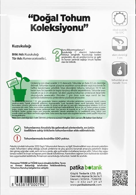 Botanik 1000 Adet Kuzu Kulağı/Ekşiotu TohumuUygunluk: 30 adet stokta