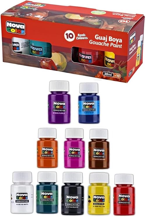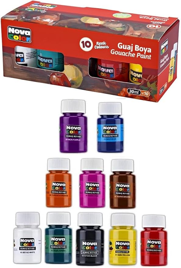 Guaj Boya 10 Renk 30 ml 1 Paket Nova Color Guaj Boya Seti 10 lu Su Bazlı Şişe Canlı Renkler Resim Okul