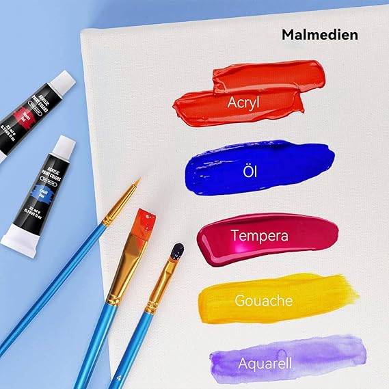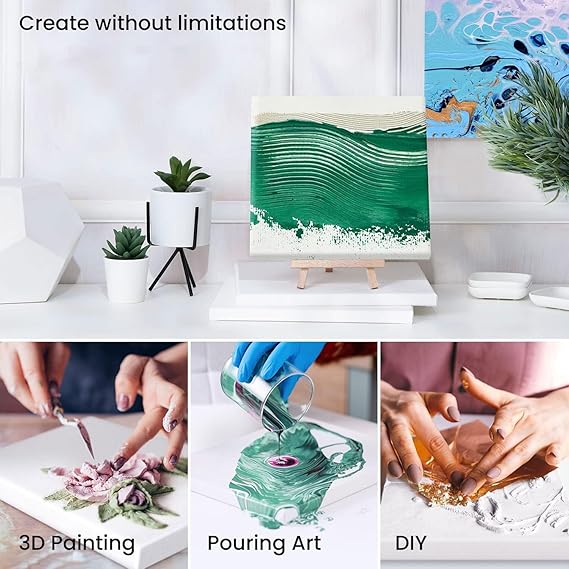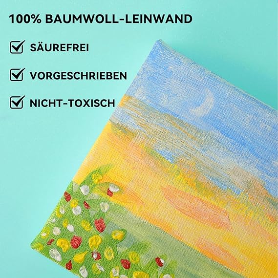 Boyama için tuval 5’li set, tuval 20 x 20 cm, tuval %100 pamuk, boyama tuvali, tuval çerçevesi, akrilik, sulu boya, yağlı boya vb. için tuval seti