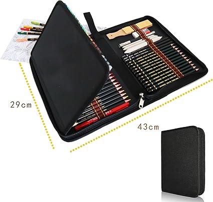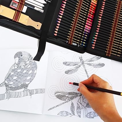 Boyama Kalemleri, Eskiz Kalem Seti, Eskiz ve Çizim Kalemleri, Profesyonel Sanat Seti ve Kit Çantası, 72 Parça, Yetişkinlere veya Çocuklara Boyama Kitapları için Set