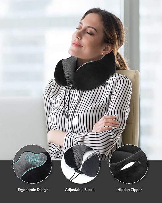 【Üstün kaliteli köpük】Üstün kaliteli hafızalı köpük seyahat yastığımızın keyfini çıkarın. Lüks hafızalı köpük dolgu maddesi 3-5 saniye geri dönüş teknolojisini kullanır, konforlu ve dayanıklıdır, vücudu yastıklar ve nihai rahatlama için ağrılı basınç noktalarını hafifletir. Tasarım insan boynuna uygundur ve yumuşak çıkıntılar her zaman rahatlamanıza ve boynun tadını çıkarmanıza olanak tanır