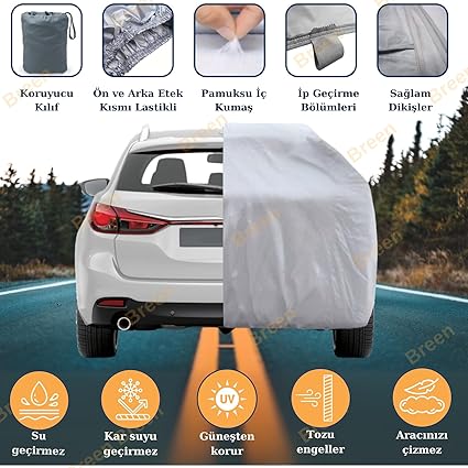 Brandası, Oto Örtüsü, Araba Çadırı (Gri, Station Wagon araba uzunluğu 4.85 metreden kısa(S))