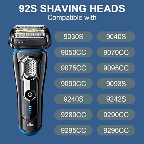 【Mükemmel uyumluluk】92S kafalar 9030s、9040s、9050cc、9070cc、9075cc、9095cc、9090cc、9093s、9240s、9242s、9280cc、9280cc、9240s serisi tıraş makineleri ile uyumludur. 90cc、 9295cc、9296cc、9297cc、9299s vb. Hangisini kullanırsanız kullanın, satın almak ve değiştirmek kolaydır.