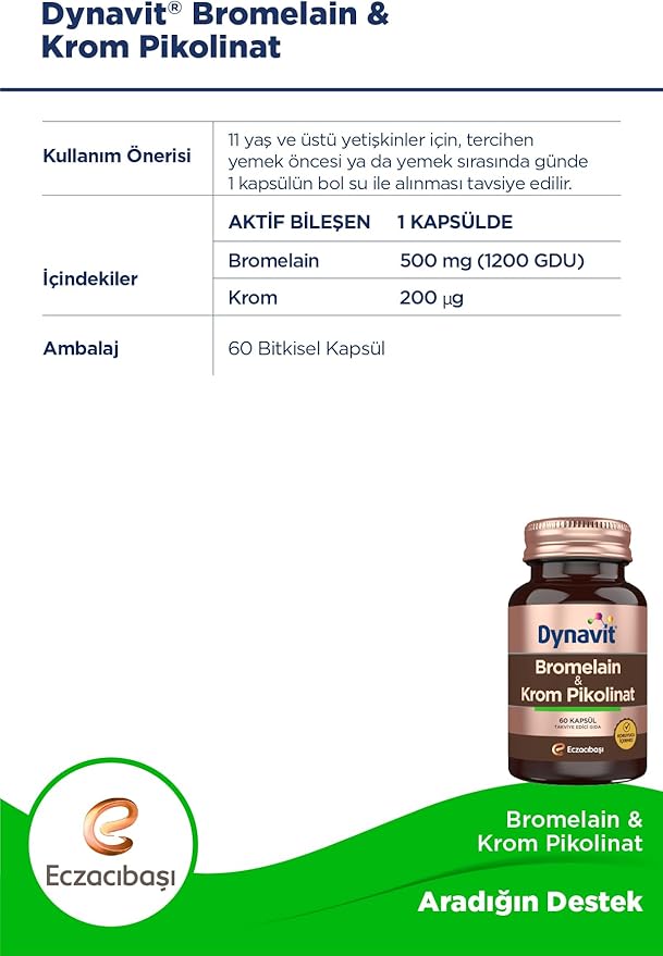 Bromelain (Ananas Ekstresi)&Krom Pikolinat 60 Bitkisel Kapsül – Bromelain, Krom Pikolinat
