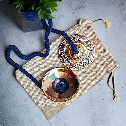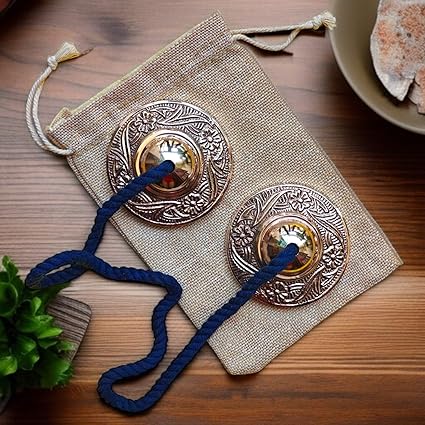 Bronz Tibet Tingsha Saklama Çantalı Ziller Çanlar Şifa Reiki | Ses Terapisi -Budist Meditasyon Yoga Çanı Çiçekli Kabartmalı Manjira – VEGAN Dostu