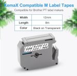 Brother P-Touch M-K bantlar M-K131 MK-131 MK-131bz 12 mm x 8 m siyah için şeffaf Brother MK Brother PT-60 PT-65 PT-90 PT-M95 PT-80 PT-100 PT-110 PT-70 PT-85 için