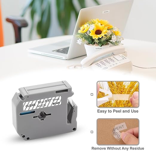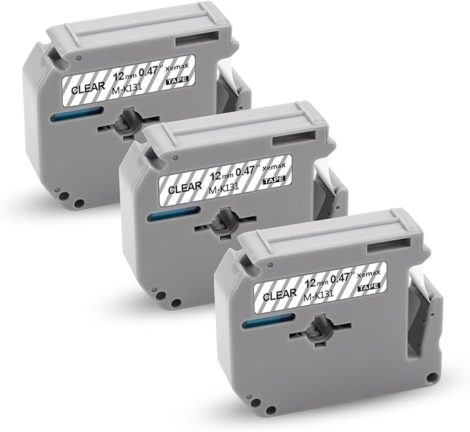Brother P-Touch M-K bantlar M-K131 MK-131 MK-131bz 12 mm x 8 m siyah için şeffaf Brother MK Brother PT-60 PT-65 PT-90 PT-M95 PT-80 PT-100 PT-110 PT-70 PT-85 için
