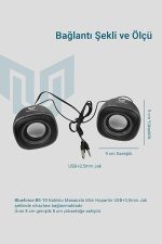 BS-10 Kablolu USB Multimedya 6W 1+1 Speaker Mini Hoparlör Siyah Pc Laptop Uyumlu