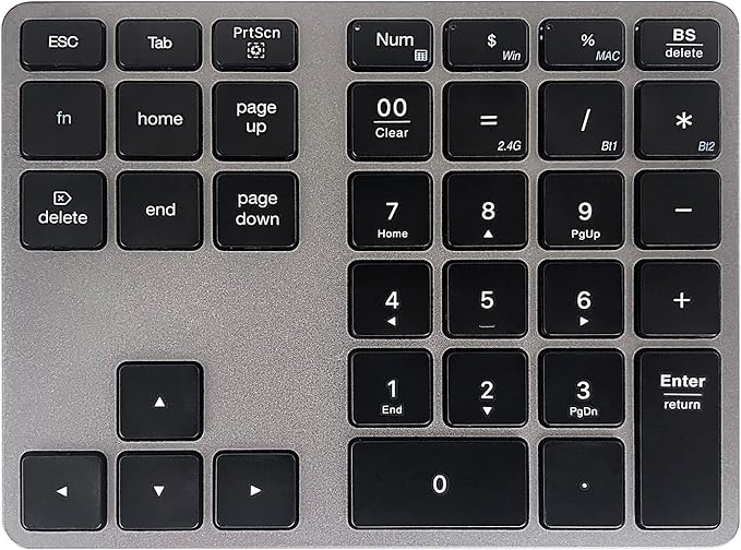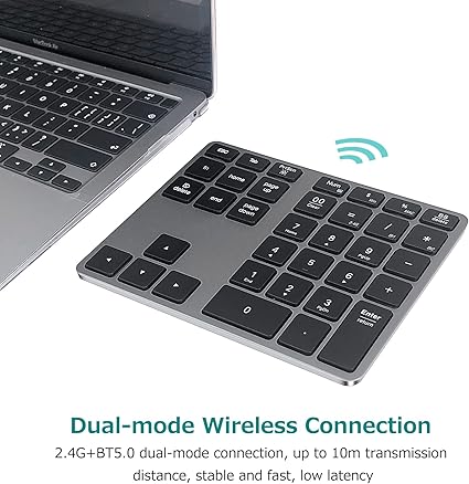 +BT5.0 Çift modlu Sayısal Klavye 35 Tuşlu Finansal Muhasebe Klavyesi Alüminyum Alaşımlı Kabuk Dahili 300mAh Pil Siyah