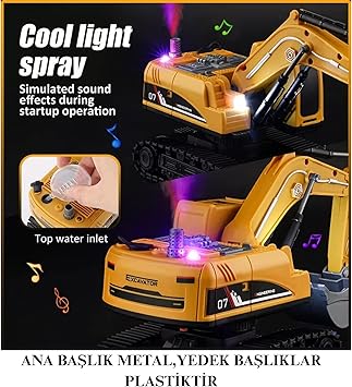 Buhar Atan 4in1 Şarjlı Ekskavatör Led Işıklı Duman Atan Gövdesi 680* Dönen Ses Efektli Kepçe Ana Kepçesi Metal