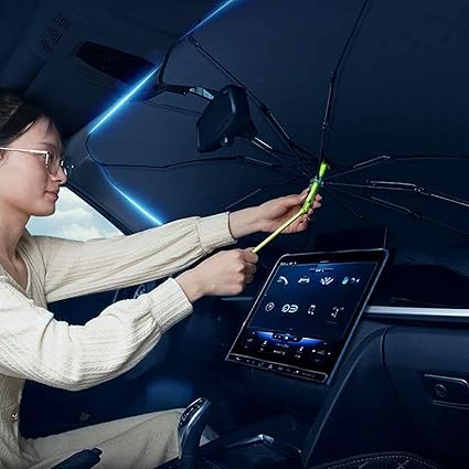 Bükülebilir Saplı Araç Ön Camı Güneş Şemsiyesi, Araba Ön Cam Güneş Tentesi, Araba Güneşliği Şemsiyesi Araç Güneş Koruyucu, Güneş Şemsiyesi Araba Ön Pencere Güneşliği Çoğu Araba Için