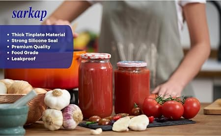 SARKAP KALİTE: SARKAP Konserve Kavanoz Kapakları ile gelişmiş konserve gıda güvenliğinden gönül rahatlığının tadını çıkarın. Memnun olmanızı istiyoruz! Müşteri Güveni birinci önceliğimizdir. Üründen hiç memnun kalmazsanız, bize bildirin, sizin için hemen çözelim. Size yardım etmek için her zaman buradayız. Türkiye’de üretilmiştir