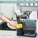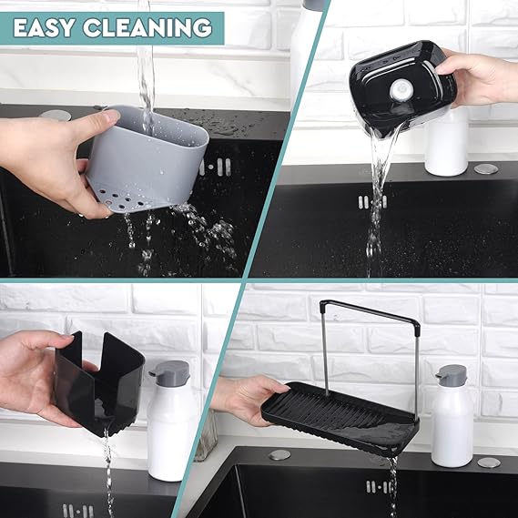 Çok işlevli: Basit ve modern tasarımı bir tepsi tutucu, bulaşık fırçası tutucu, toplama haznesi, bez tutucu ve sünger tutucu içerir. İsteğe göre sabunluk ile kombine edilebilir veya sökülebilir