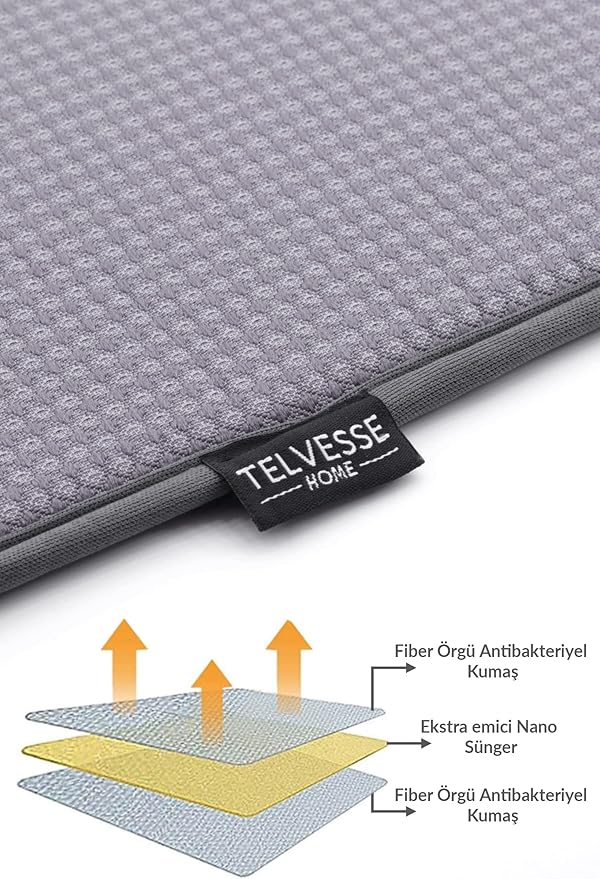 Bulaşık Kurutma Örtüsü Nanofiber Bulaşık Matı Kurulama Bezi Ultra Emici Bulaşık Örtüsü Gri