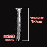 Buldex Vida 7.5×100 mm 50 ADET Sivri Uçlu Dübelsiz Beton Vidası Tork Duvar Vidası Buldeks