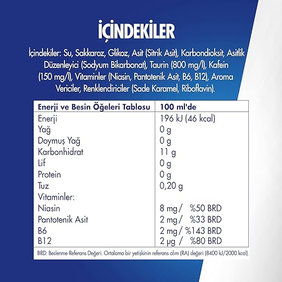 250 ml 1 kutu Red Bull Enerji İçeceği 37,5 mg kafein içerir. Bu bir fincan demleme siyah çayın kafein miktarına yakındır