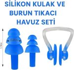 Burun Klipsi ve Kulak Tıkacı Seti – Yumuşak Silikon, Su Geçirmez, Havuz ve Deniz için, Yetişkin ve Çocuklar İçin